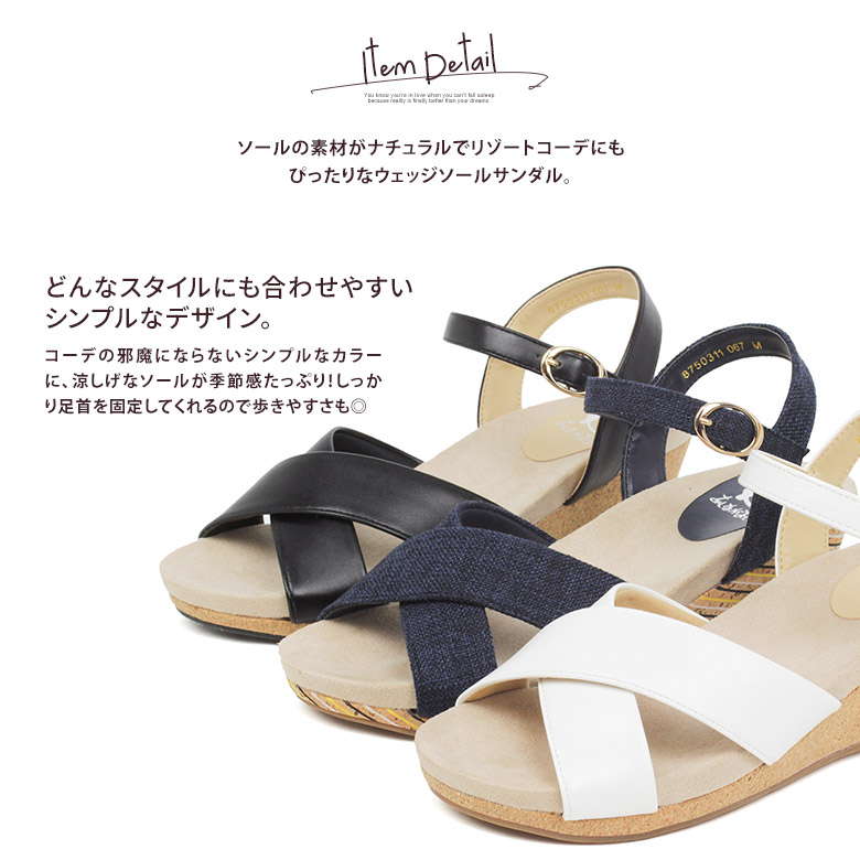 ソールの素材がナチュラルでリゾートコーデにもぴったりなウェッジソールサンダル。